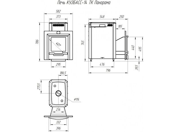 Печь Теплодар Кузбасс-14 ТК Панорама 2018 без дверцы