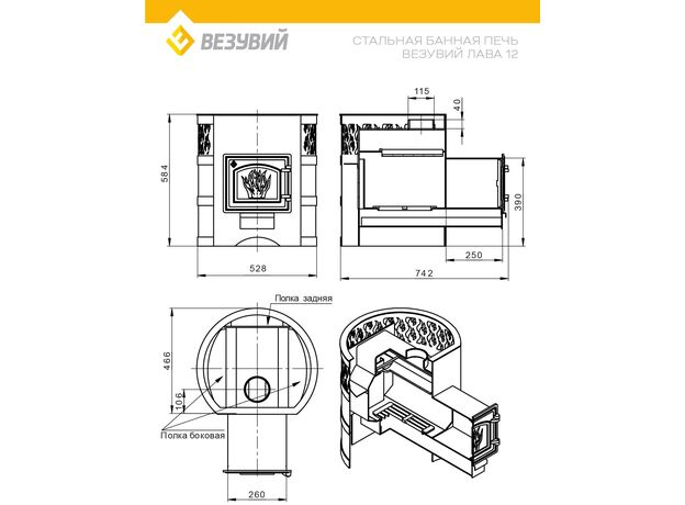 Печь для бани Везувий Лава 12 ДТ-3 2022