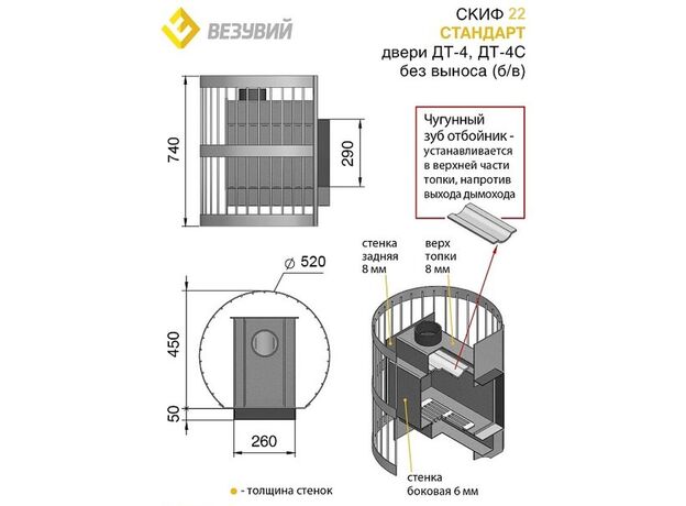Печь для бани Везувий Скиф Стандарт 22 ДТ-4 БВ