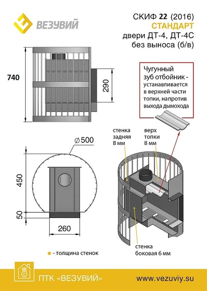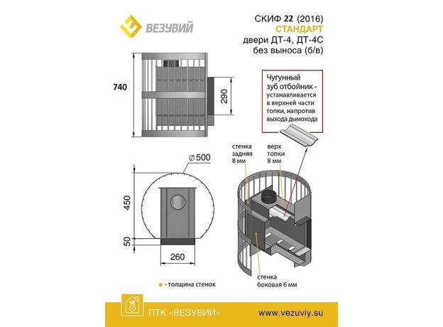 Печь для бани Везувий Скиф Стандарт 22 ДТ-4С БВ