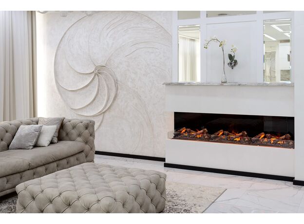 Также добавлены такие опции, как возможность изменения интенсивности пламени в различных зонах очага и управление камином через беспроводной Bluetooth пульт ДУ.