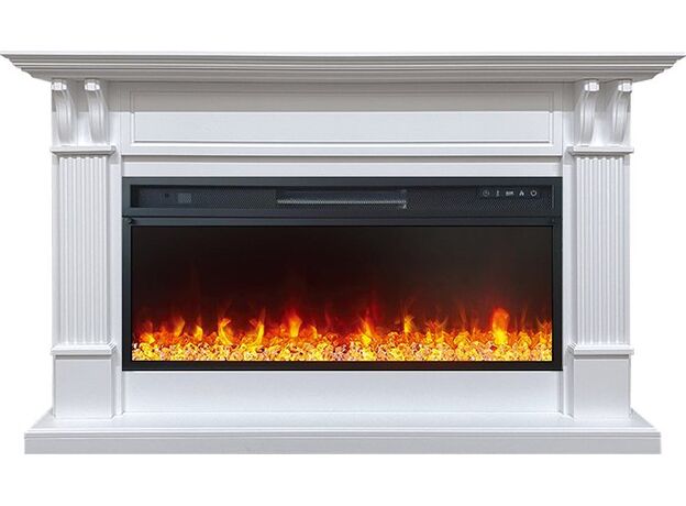 Линейный портал Cardiff – строгая модель в классическом стиле. Обладает широкой каминной полкой, которая может использоваться для размещения небольших предметов декора. Зона очага украшена боковыми колоннами, которые акцентируют внимание на ярком реалистичном пламени в камине.Каминокомплект Cardiff с очагом Royal Flame подчеркнет изысканный стиль интерьера и наполнит дом уютом.