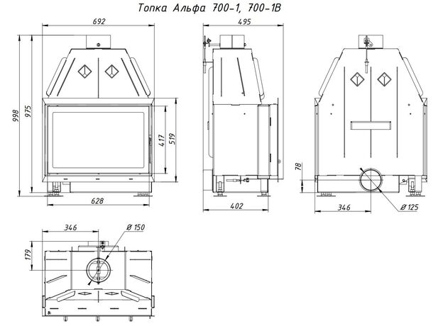 Каминная топка EcoKamin Альфа 700-150 B