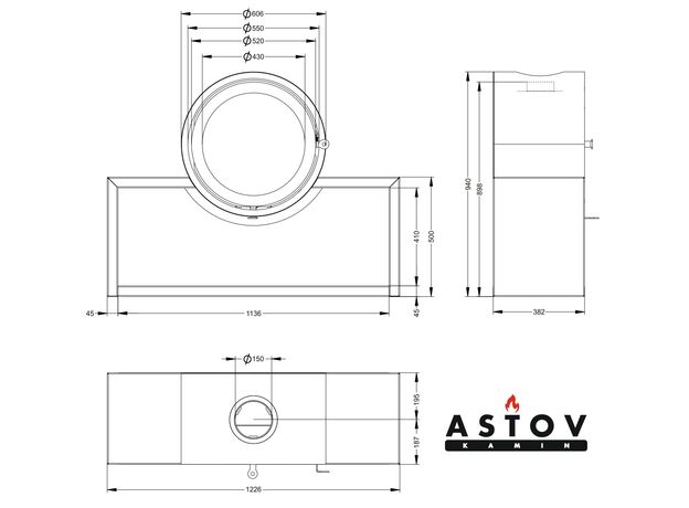 Печь камин Astov D600 на подиуме