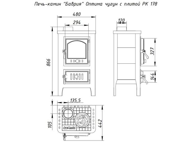 Печь камин EcoKamin Бавария Оптима Чугун с плитой