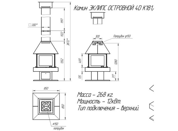 Печь камин EcoKamin Эклипс Островной 4D Графит