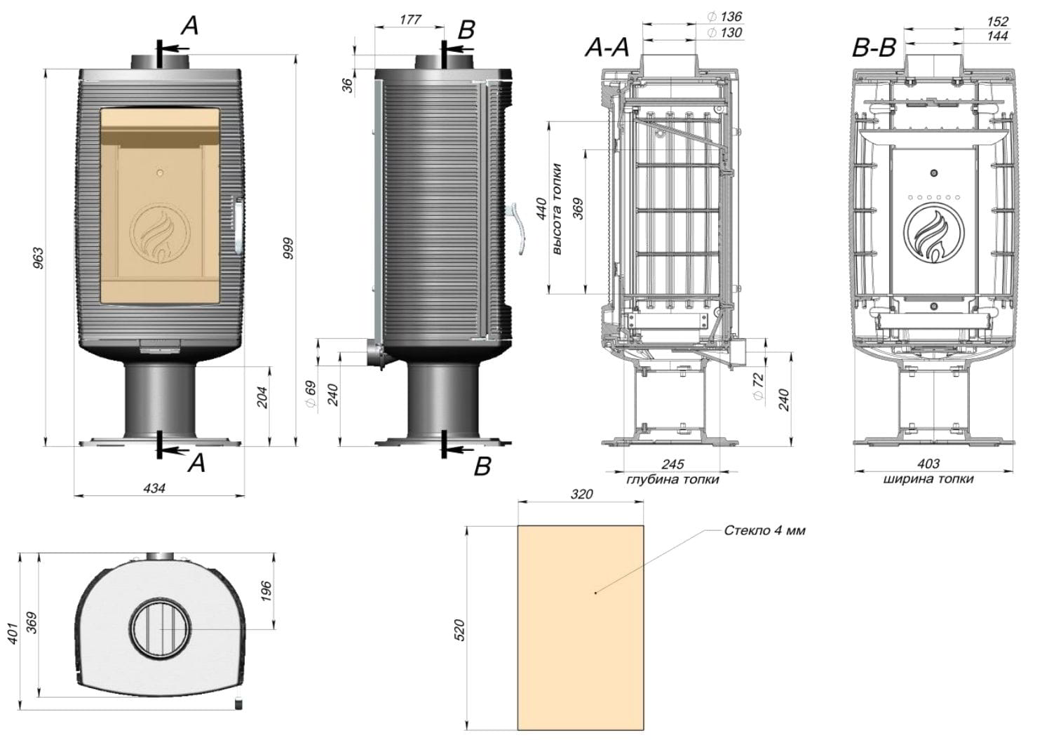 Диаметр дымохода: