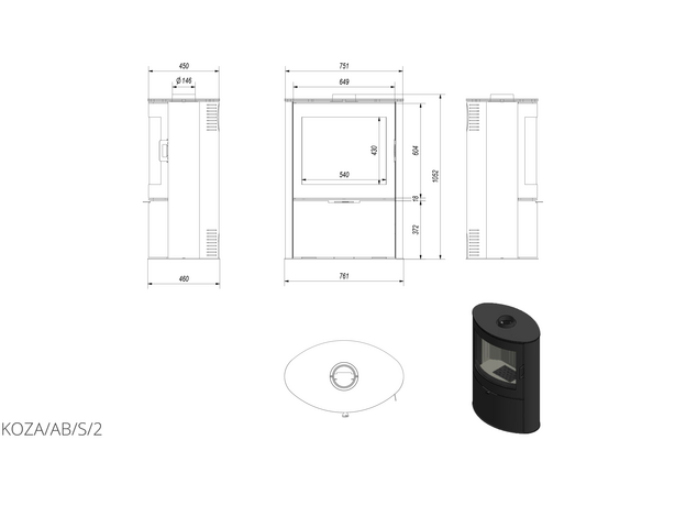 Печь камин Kratki Koza AB S/2