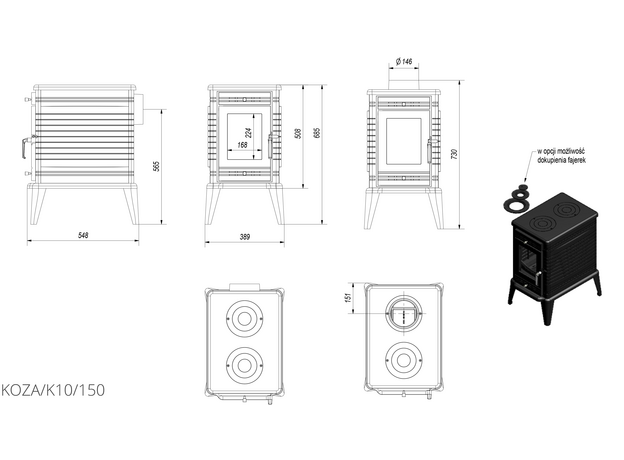Печь камин Kratki Koza K10