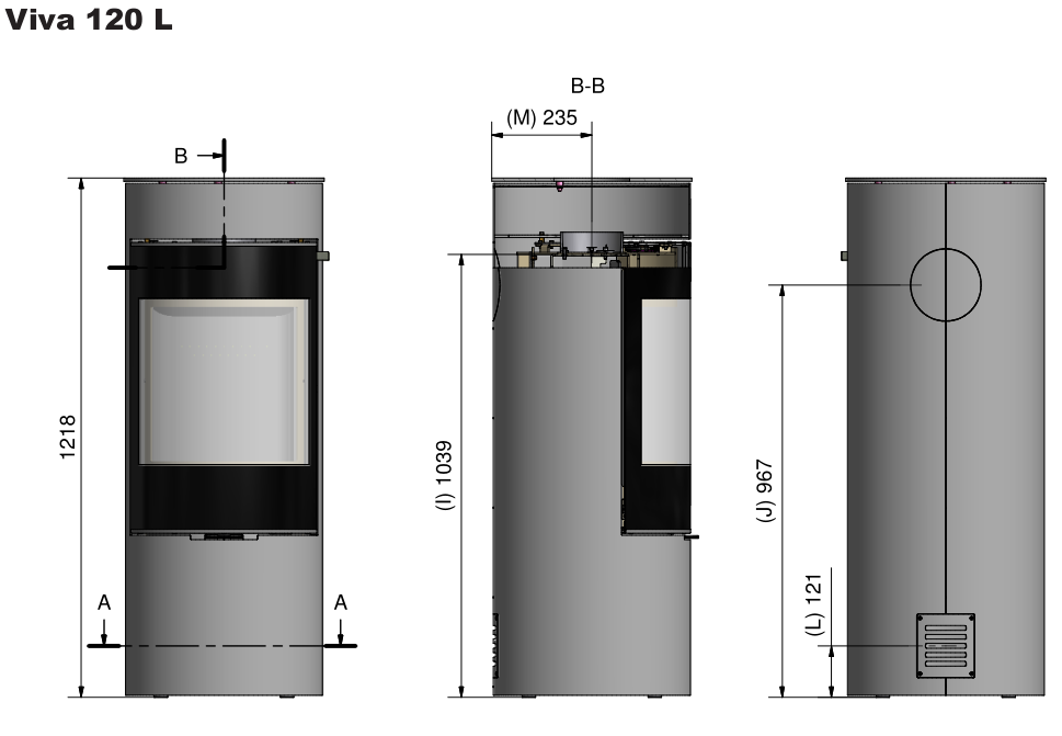 Печь камин Rais Viva 120 L Glass Black Side Glass