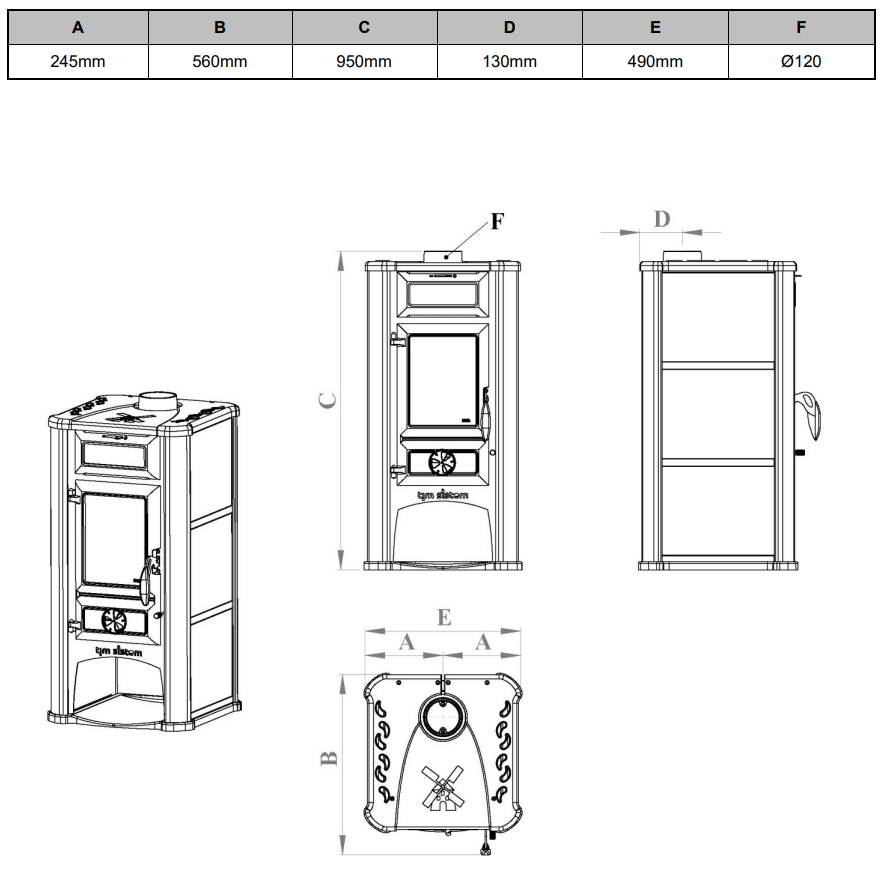 Диаметр дымохода: