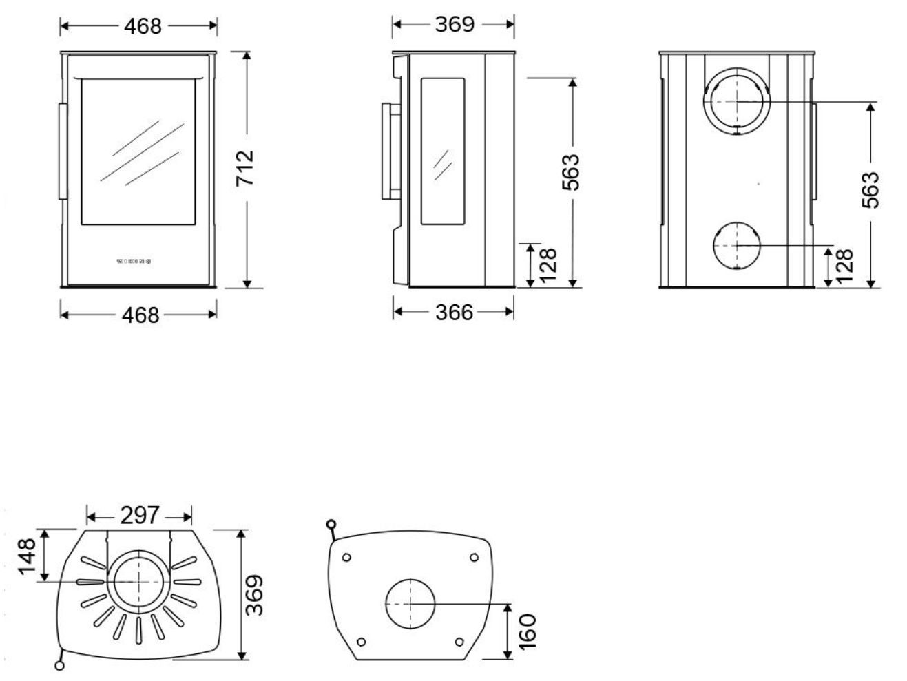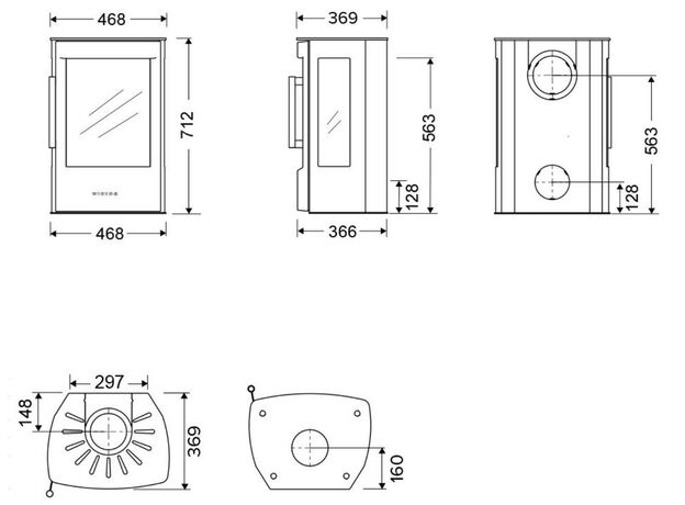 Габариты. Печь не занимает много места, не требует большого пространства для установки. При этом Wiking Miro имеет огромное остекление. Для установки печи не нужен фундамент. Её можно устанавливать на любой тип полового покрытия. В том числе на деревянные полы или на ламинат. Нижняя часть Викинг Миро не нагревается СОВСЕМ. Для защиты от возможного попадания случайных угольков на пол мы укладываем перед печью небольшой стальной или стеклянный притопочный лист.